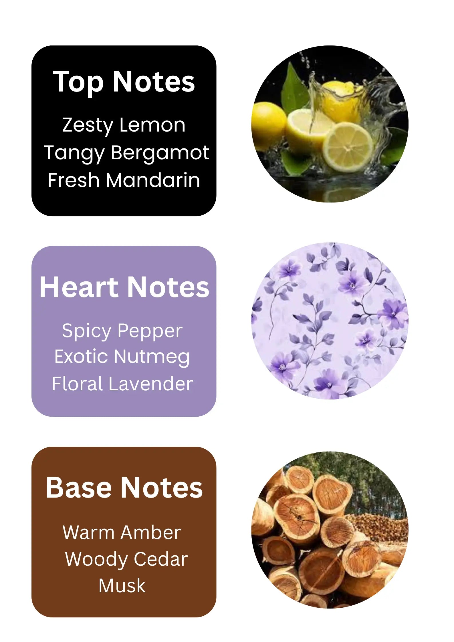 Base Notes: Warm Amber, Musk, and Woody Cedar