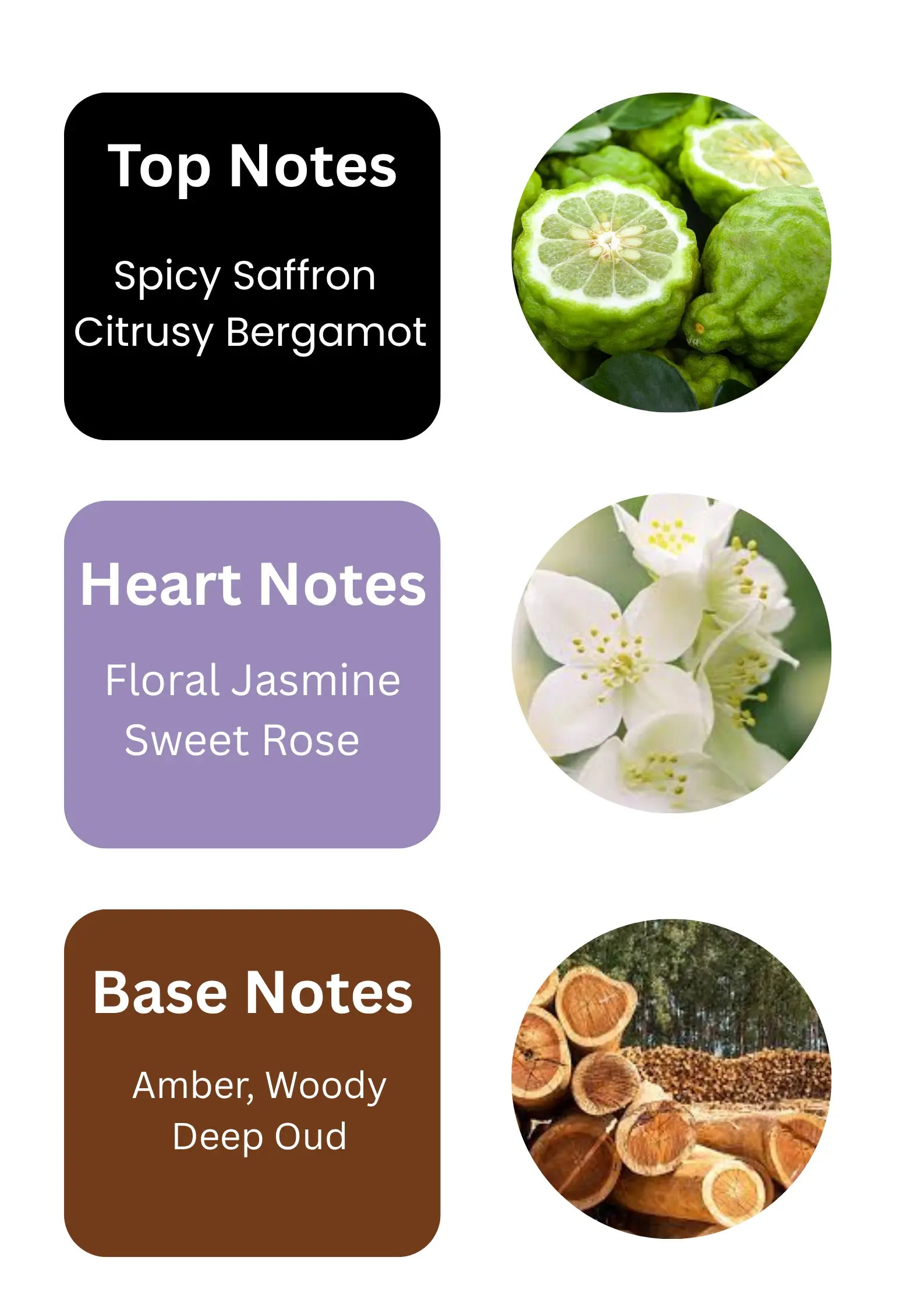 Top Notes: Spicy Saffron and Citrusy Bergamot